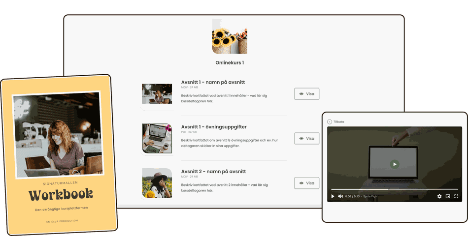 Massor av inspiration, mallar och guider som hjälper dig på vägen mot ditt mål. Allt material i kursen har du tillgång till för all framtid.